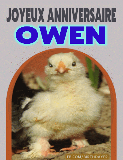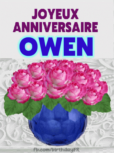 Joyeux anniversaire Owen, je te souhaite une année qui te donne des raisons de sourire et de chérir chaque jour. Bonne journée Owen.